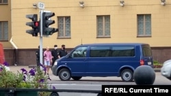 У входа в здание КГБ дежурили "люди в штатском", журналистов задерживал ОМОН, сообщает Свобода.