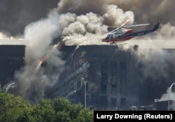 Спустя несколько мгновений густой дым от пожара и пепел заполнили все улицы.