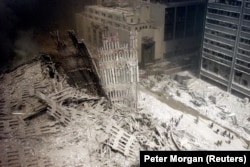 Люди призывали на помощь из горящей Северной башни Всемирного торгового центра. Всего там погибло 1366 человек, находившихся на верхних этажах Северной башни ВТЦ. Большинство погибли в момент столкновения самолета с башней, остальные – из-за пожара и обрушения здания