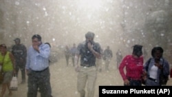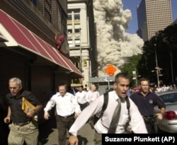 Люди, оказавшиеся в зоне падения обломков башен, спасались бегством.