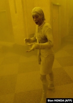 Одна из выживших после обрушения Южной башни – Марси Бордерс – укрывается в офисном здании.